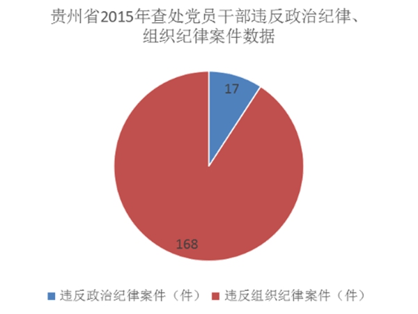 严明政治纪律、组织纪律,2015年共查处党员干部违反政治纪律案件17件,违反组织纪律案件168件。在执纪监督过程中,全省各级纪检监察机关坚持把违反政治纪律和政治规矩、组织纪律,存在“七个有之”现象、违反“五个决不允许”作为纪律审查的重点,对有关问题线索及时排查、严肃处理。严肃处理了贵阳市科协党组集体违反政治纪律和组织纪律,擅自调整纪委调查对象职务的问题,对党组班子成员全部问责,公开曝光。