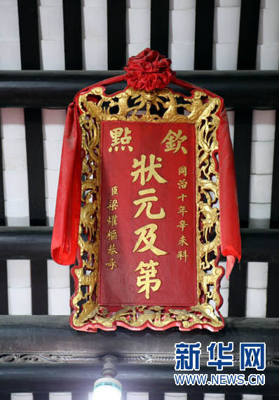 猎德村祠堂内悬挂的钦点清朝状元及第匾。