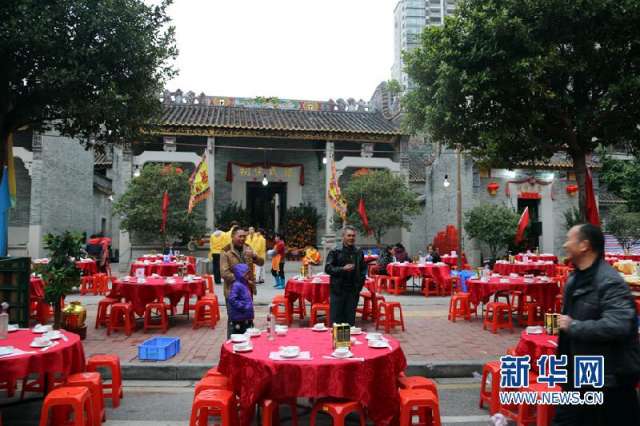 广州猎德村的热闹年俗,大家等待客人们入席。