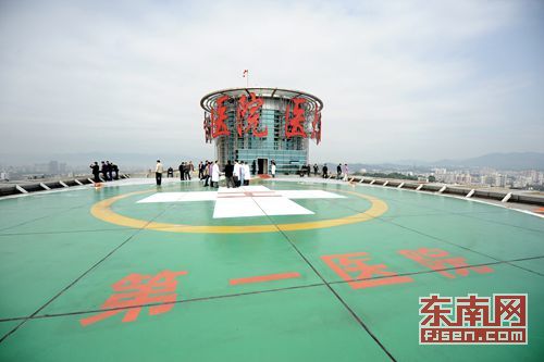 附一医院的楼顶停机坪有27层高,飞机很容易发现着落的目标 (图由附一医院提供 陈宇荣摄影)