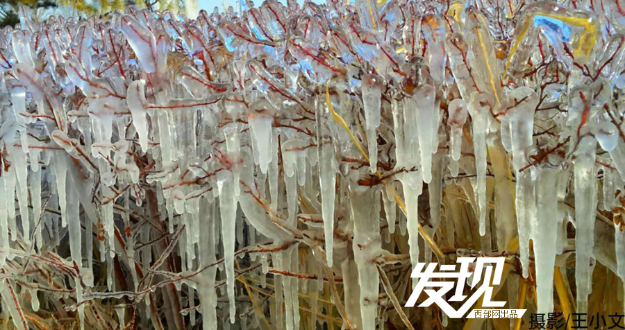 发现关中:华阴现冰挂景观 冰雕玉彻似琥珀