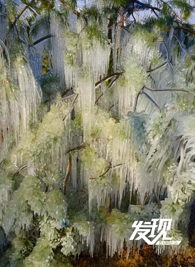 在大自然鬼斧神工的雕琢下,满树的枝条亮晶晶的犹如一根根银条,晶莹透亮。