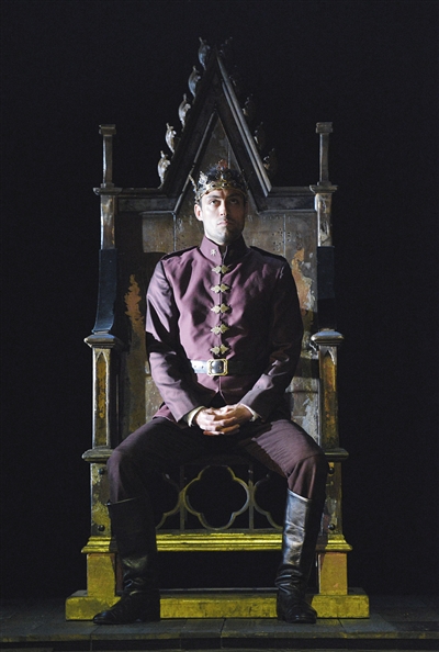 《亨利五世》中亨利五世坐在王座上。 Keith Pattison 摄