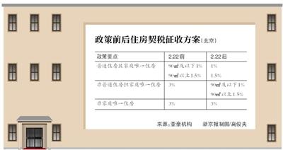 “如果这些此前被划为‘非普通住房’为家庭唯一住房的话,购房者按新政将由此前需缴纳总房款3%的契税,降至可能最低1%的契税。”亚豪机构市场总监郭毅表示。