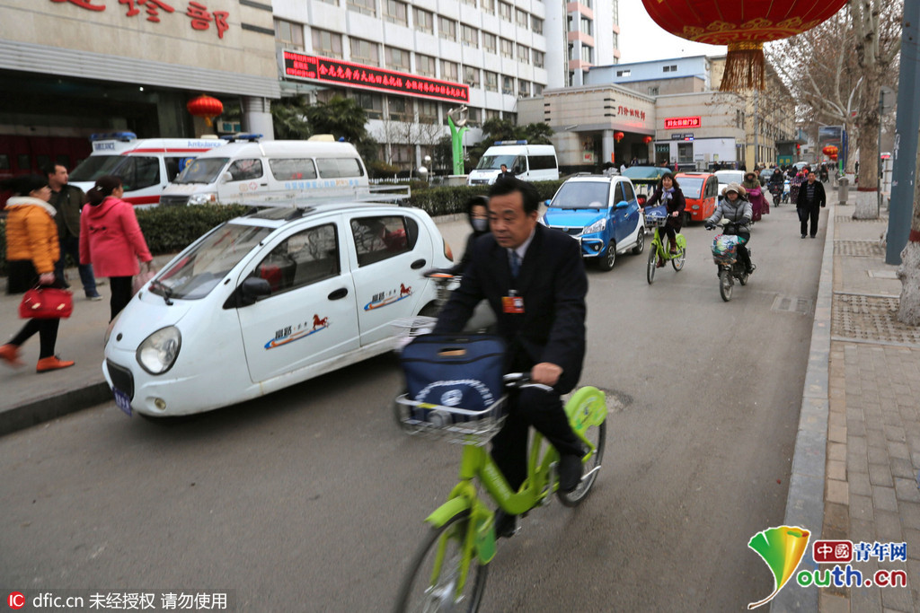 河南安阳多数代表委员骑自行车参加“两会”