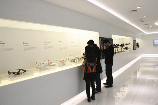 央广网财经记者在大疆展厅看到,以手持云台为例,无论摄像机做多大幅度的动作,云台也随之调整相机的角度以保证画面的稳定,别的无人机企业可以做到的精度是正负0.5,大疆第一个在全球做到了正负0.01度。