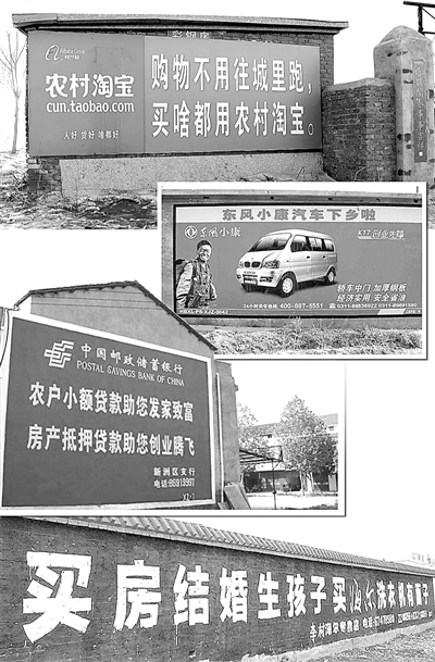 以前是“百年大计,教育为本”的教育刷墙,后来是“某某创造,最好猪料”的农资刷墙,再到如今,汽车、电子产品、快速消费品、商品房等新鲜物件都纷纷出现在农村的墙体广告上。