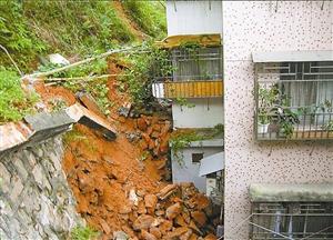 2005年,罗湖区东湖街道景亿山庄边坡出现滑坡前兆,由于及时发现、组织得力,滑坡未造成伤亡事故,这是深圳积极群测群防地质灾害的成功例子。市规划国土委供图