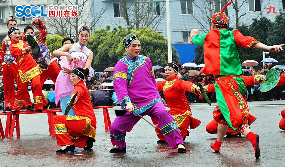 2月21日,四川省成都市,享有“川剧活化石”和“川西二人传”之称的蒲江幺妹灯表演。