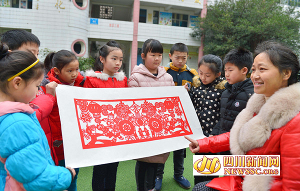 2月21日,四川省广安市广安区厚街小学老师王明坤和学生一起欣赏元宵节剪纸艺术作品。在元宵节到来之际,王明坤老师组织学生一起,以细腻秀美的剪纸艺术手法,创作与元宵节有关的作品,让学生在受到艺术熏陶的同时,更深刻地学习理解中国的传统文化和节日知识。