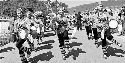 春节后的第一个街天,玉溪市峨山彝族自治县的彝族群众迎来了传统节日——开新街节。人们来到菜花盛开的田野里,舞起龙、跳起花鼓,庆祝今天的幸福生活。