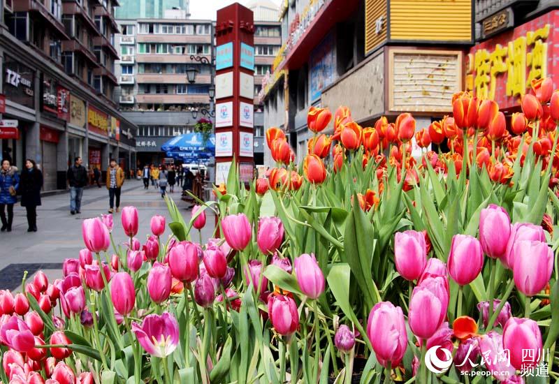 正月十五,初春时节,成都春熙路街头姹紫嫣红。周栩如 摄