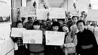 2月24日,老师陈瑛和部分同学展示为怀念左亭画的画和手抄报。徐虹雨摄