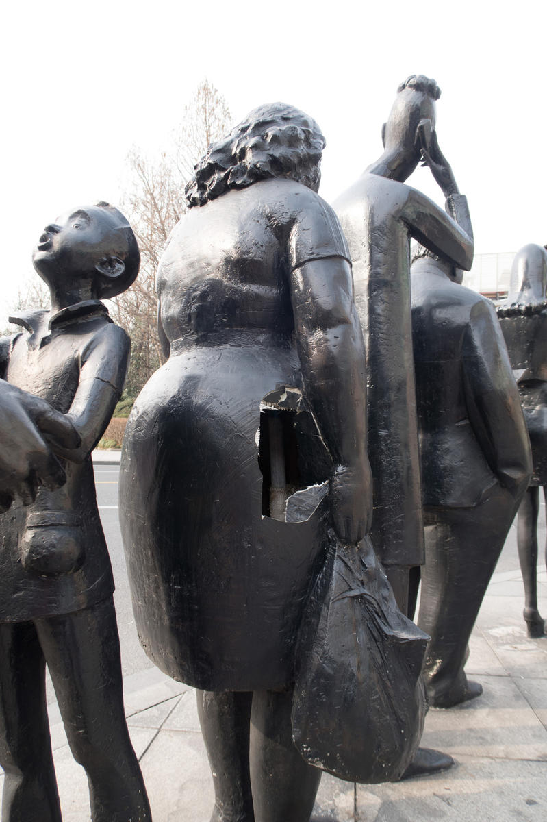 上海街头雕塑破大窟窿 成行人垃圾箱