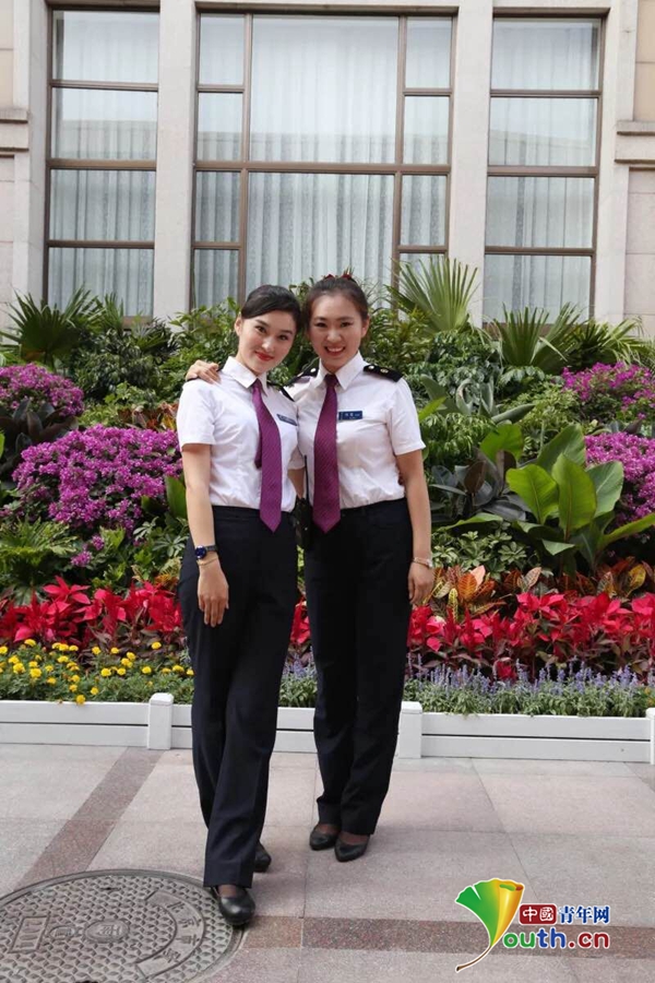 两个姑娘一起工作已有一年半的时间了,她们的故事开始于2014年。起初两人在不同班组工作,陶志婷在丙班、刘雯在乙班,工作生活上毫无交集。2014年,由于丙班服务组的一名客运员离职,刘雯被调到丙班,两个原本陌生的姑娘从此开始了她们的姐妹时光。