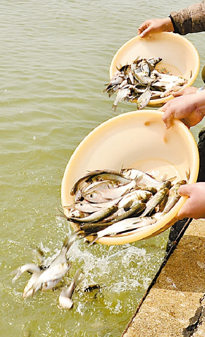 本报合肥2月28日电 (记者叶琦)为减轻巢湖水体富营养化,实现巢湖渔业可持续发展,巢湖管理局渔政总站25日开展今年首次增殖放流活动,共向巢湖投放260万尾黄、白鲢鱼苗(图二,马丰成摄)。按计划,今年3月底前将向巢湖投放1500万尾黄白鲢鱼苗,全年共向巢湖陆续投放300多万元的各类鱼苗2.6亿尾。据巢湖管理局渔政管理总站渔业科科长尹峰介绍,黄、白鲢每长一公斤要吃掉40到50公斤的蓝藻。