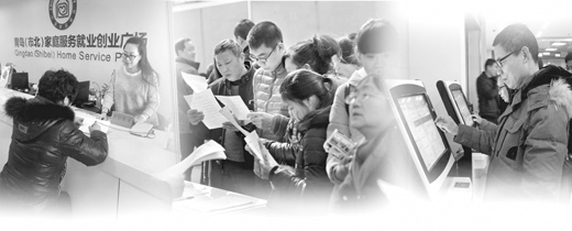 正月十六,不少求职者来到青岛市市北区家庭服务就业创业广场,想在这里寻求一份家政服务类工作。“来找工作的不少,客户需求也很多。”赵杰说,尽管求职者多,但家政服务类的高级人才比较稀缺。“刚才那位有证的大妹子,到谁那,谁都得抢着把她签下来。在青岛,有证有技能,基本素质良好又有经验的育婴师,月入过万已经不稀奇。”