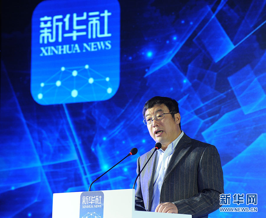 2月29日,新华社客户端3.0版发布会在总社大厦多功能厅举行。图为360公司创始人、总裁,360企业安全集团董事长齐向东致辞。新华网 陈竞超 摄