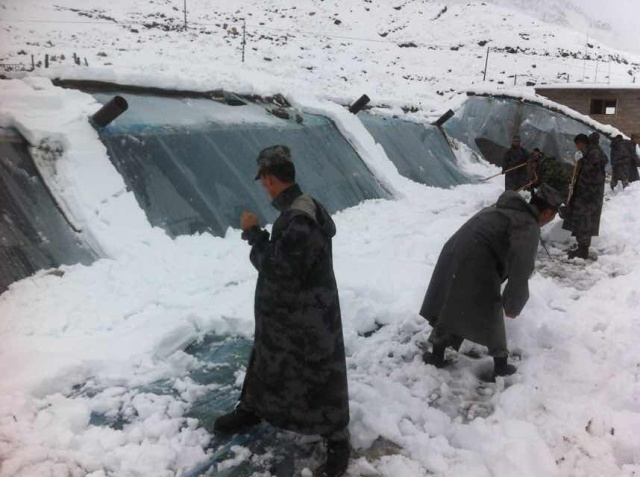 那年夏天的雪,边防战士在清扫积雪