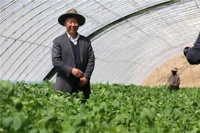 高宝军在普兰现代农业示范园的大棚内
