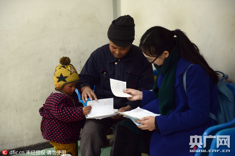 2016年2月29日,中国北京,60岁的河南工人樊喜法曾在三亚打工时收养了一个双性弃婴,此后三年多来,他一直为给孩子治病东奔西跑。孩子与养父在医院内玩耍。