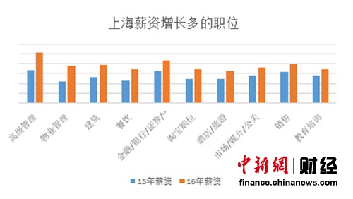 上海薪资增长较多的职位 数据来源:国内某知名招聘网站