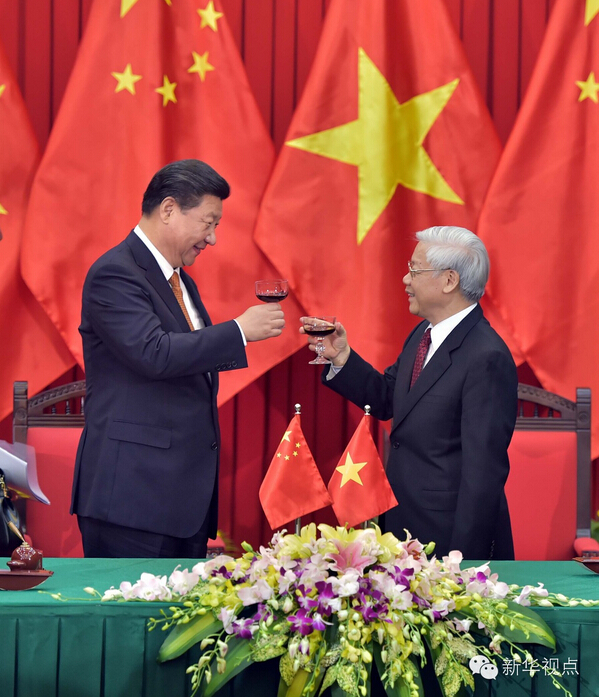 习近平则从“命运共同体”的高度对中越两党两国关系作出描述,并表示发展中越关系是“我们的历史责任”。习近平还重申了要继续秉持“十六字”方针(长期稳定、面向未来、睦邻友好、全面合作)和“四好”精神(好邻居、好朋友、好同志、好伙伴)。而在具体做法上,习近平用“高层互访”“政治互信”“党建交流”“务实合作”等几个关键词,指明了双边关系的深化方向。
