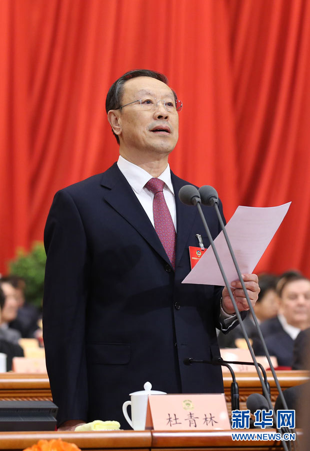 3月3日,中国人民政治协商会议第十二届全国委员会第四次会议在北京人民大会堂开幕。杜青林主持开幕会。 新华社记者 庞兴雷 摄