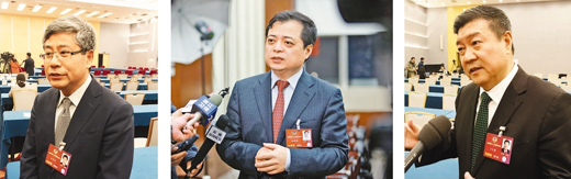 白重恩委员、南存辉委员和王文彪委员(从左到右)在联组会后接受采访。