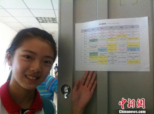 资料图。成都一中学实施“走班制”,学生向记者展示“私人定制”的课程表。殷樱 摄