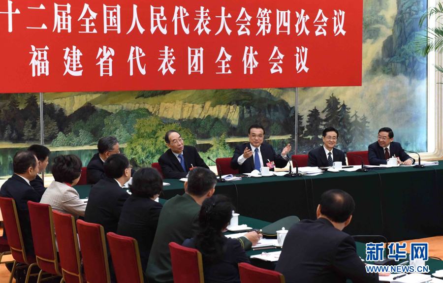 3月7日,中共中央政治局常委、国务院总理李克强参加十二届全国人大四次会议福建代表团的审议。 新华社记者饶爱民摄