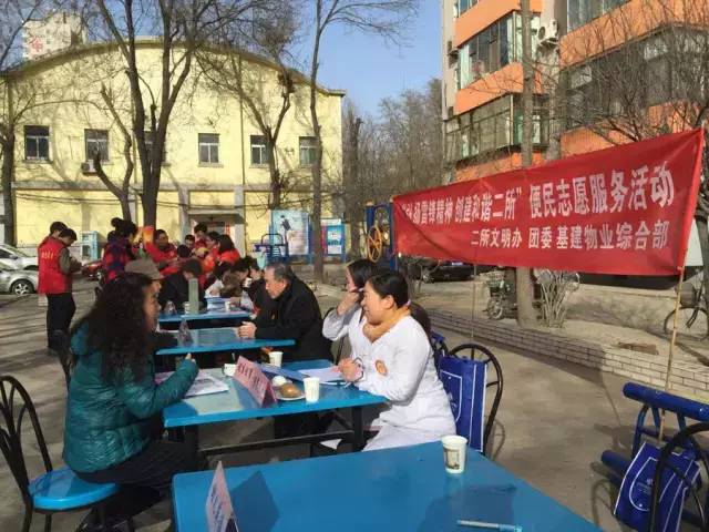 “走进社区、学雷锋活动”,青年志愿者们走进社区,为社区百姓进行健康咨询、公益剪发、家电维修、街道清扫、公益义卖等爱心志愿活动。