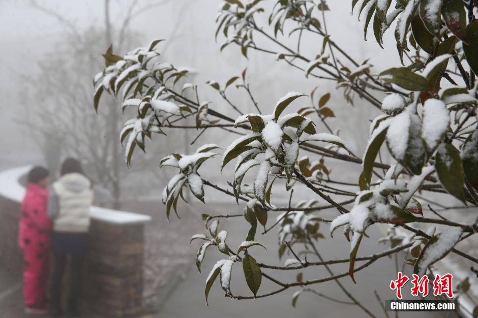 3月9日清晨,受强冷空气影响,浙江省湖州市安吉县天荒坪、报福、上墅、山川等山区迎来降雪。截至上午10点,不少地区已经有积雪产生,难得一见的春日雪景吸引了很多游客驻足拍照。中新社记者 夏鹏飞 摄