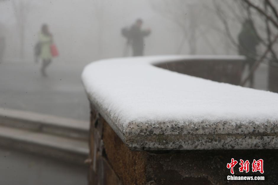 3月9日清晨,受强冷空气影响,浙江省湖州市安吉县天荒坪、报福、上墅、山川等山区迎来降雪。截至上午10点,不少地区已经有积雪产生,难得一见的春日雪景吸引了很多游客驻足拍照。中新社记者 夏鹏飞 摄