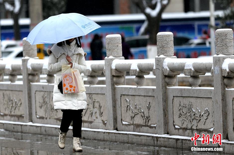 3月9日,陕西省延安市飘起雪花。当日,一场“倒春寒”让中国多地气温骤降。据中央气象台监测显示,受一股来自北方的强冷空气影响,中国自北向南出现大降温,气温最多跳水15℃,多地有强降雪。图为民众雪中出行。 张远 摄