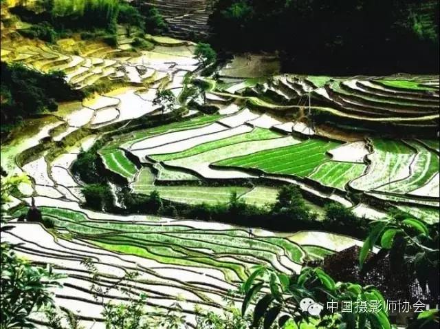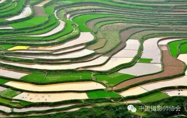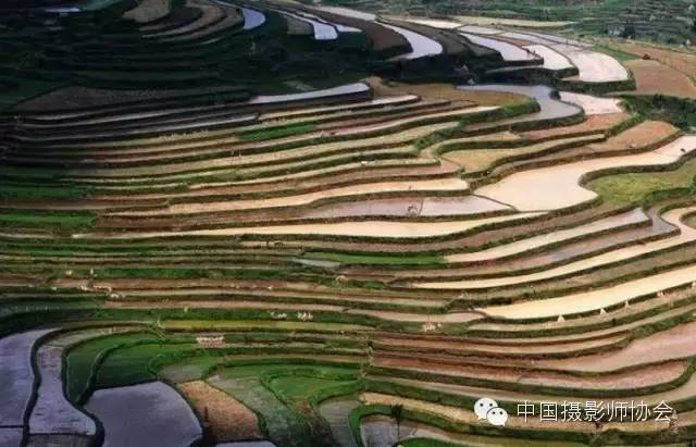 在耕作期里泉水自山顶向山下逐层灌溉气象万千,收获期里五颜六色的农作物又给梯田增添了无限生机。