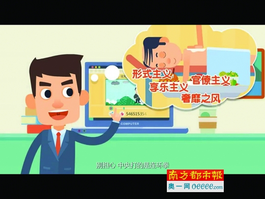 随着视频的热传,朝阳工作室的背景也再次受到网友们关注。一年前,朝阳工作室曾推出《群众路线系列动漫视频》,其中,习大大挥棒“打虎”的卡通形象首次亮相屏幕。南方都市报也是此次系列视频制作单位之一。