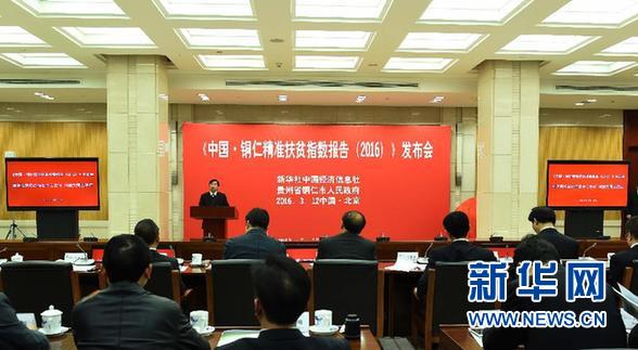 3月12日,《中国·铜仁精准扶贫指数报告(2016)》在北京发布。新华社记者杨宗友摄