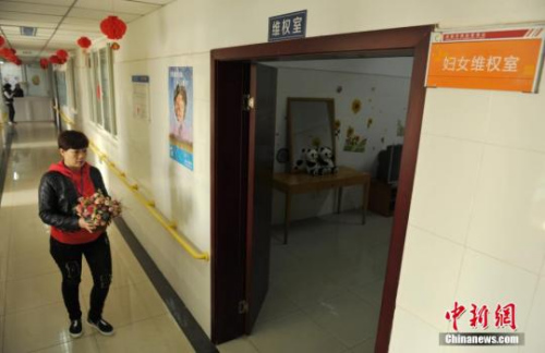 资料图:成都市妇女维权救助中心10年来已先后为30余名家庭暴力受害人提供了临时生活帮助、心理抚慰和法律援助等。图为今年3月3日,工作人员装点临时庇护屋。 中新社记者 刘忠俊 摄