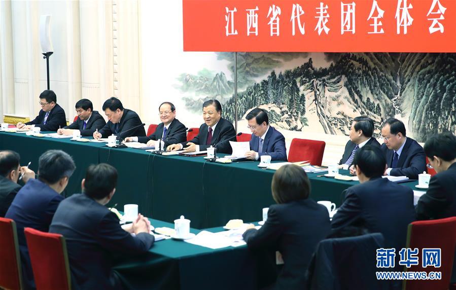 3月13日,中共中央政治局常委、中央书记处书记刘云山参加十二届全国人大四次会议江西代表团的审议。 新华社记者 丁海涛 摄