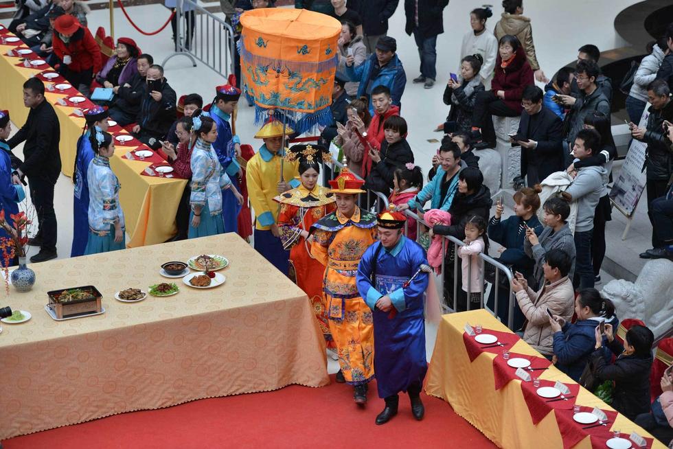 商场办满汉全席玩“穿越” “宫女”美艳动人