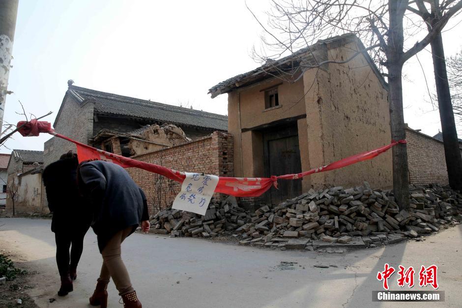 3月12日,山西省运城市盐湖区,民众将危房区域隔离警戒,防止发生倒塌。 陈卫 摄
