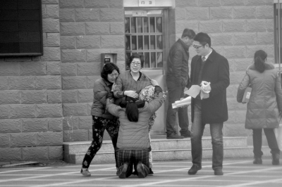 孩子的生母下跪说对不起。 京华时报记者谭青摄