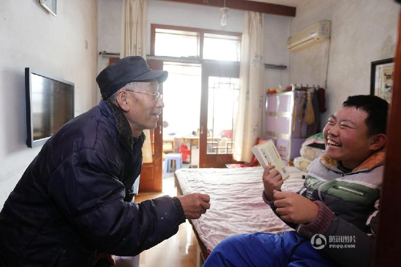 安徽爷爷自制康复器材 助脑瘫孙儿站起来
