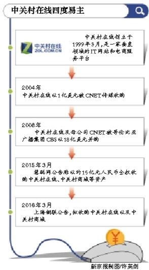 新京报讯 (记者赵毅波)已经三次易主的中关村在线又被卖了。昨日,上海钢联发布公告称,拟购买北京知行锐景科技有限公司全部股权,以收购其旗下的中关村在线以及中关村商城网站资产。