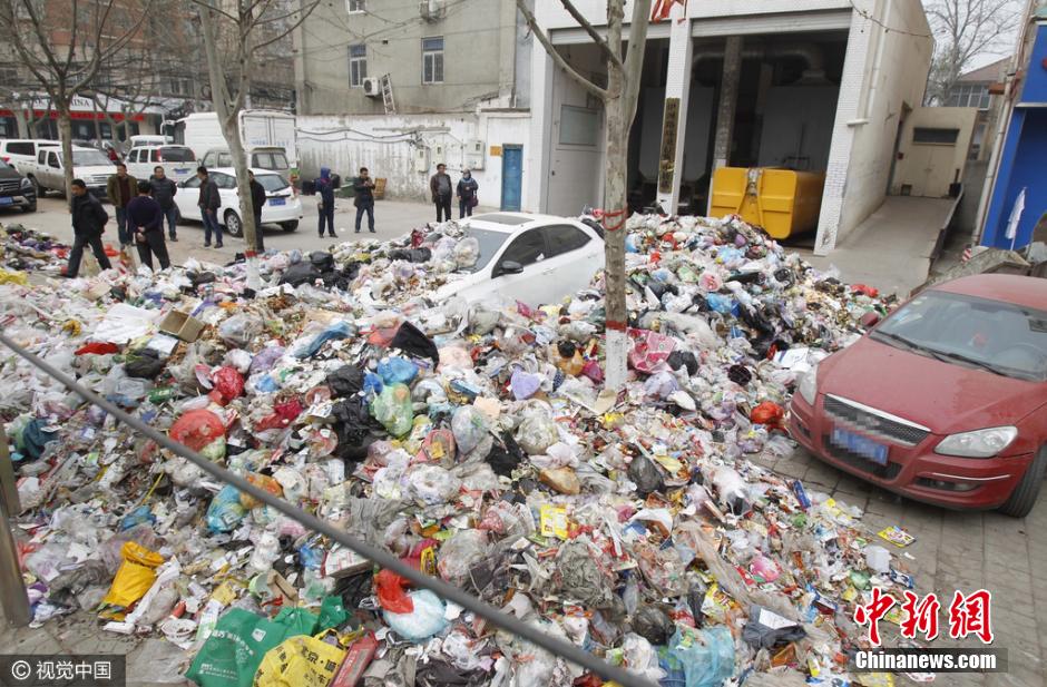 2016年3月17日,河南省郑州市伊河路,一辆停靠在垃圾中转站门前的轿车被数十吨生活垃圾掩埋。现场,数十吨生活垃圾基本将一辆白色轿车包围吞没,整个车身只剩下车顶和车门漏在外面。据附近市民称,这辆夜间停靠在垃圾中转站门前的轿车,因联系不到车主,中断了垃圾车进站清运,愤怒的环卫工一气之下将送来的垃圾纷纷倾倒在轿车的周围。图片来源:视觉中国