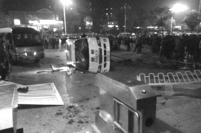 处置过程中,又遭到多名涉嫌传销人员的阻挠,并引起涉传人员聚集。当天晚上9时多,聚集人员越来越多,并与民警发生肢体冲突。部分传销人员情绪激动,对执勤车辆进行打砸,还掀翻了执勤车,造成一名打传人员和两名民警受伤。