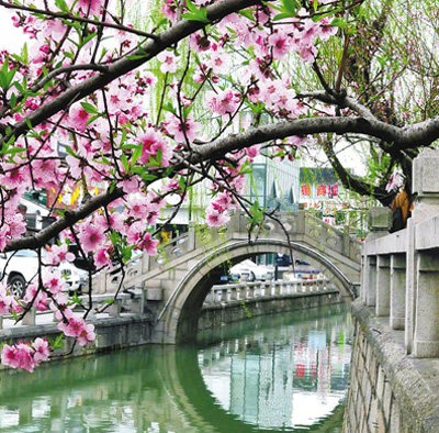 3月17日,阳春三月的江苏苏州街头、河边及园林景区到处桃红柳绿,宛如一个美丽迷人的大花园。