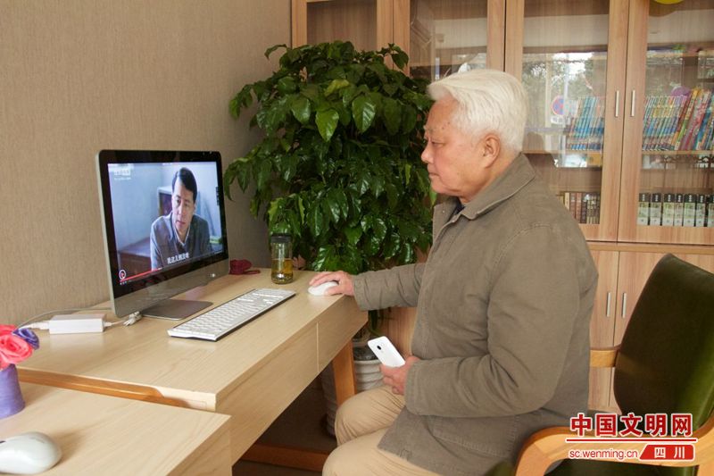 宋赞铭老人在照料中心的网吧上网,照料中心的出现使他的生活更加丰富。