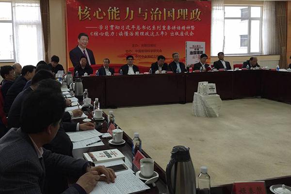 3月19日,“核心能力与治国理政——学习贯彻习近平总书记系列重要讲话精神暨《核心能力——读懂治国理政这三年》出版座谈会”在中央党校举行。图为会议现场。